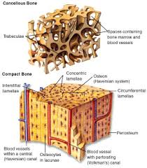 La agrupación de osteones forman elementos de mayor volumen, las trabéculas de substancia ósea, que pueden observarse a simple vista en los cortes de hueso o en las radiografías. De esas trabéculas se forman dos clases de substancia ósea; cuando ellas se aplican una a la otra estrechamente, constituyen una masa sólida, la substancia compacta. Si por el contrario, están agrupadas laxamente, formando series de poros o cavidades en forma de esponja, constituyen la substancia esponjosa o trabecular.
